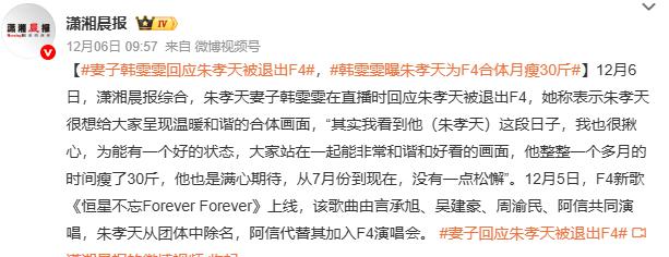 因为朱孝天提前流露了 F4 的相关责任,从 2025 年 9 月启动,朱孝天被频传将不再参与 F4 的上演。