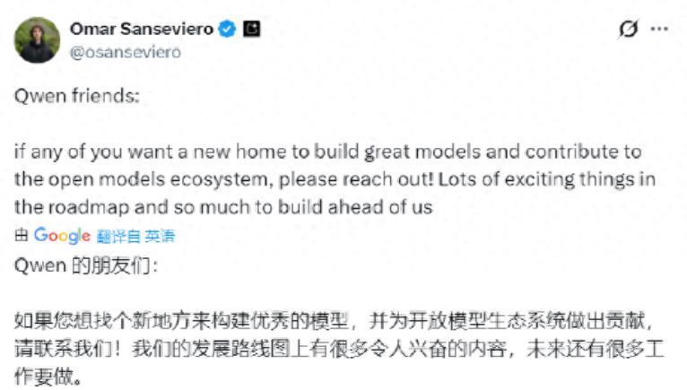 3月5日讯息,就在通义千问(Qwen)多位中枢成员接连书记去职之际,谷歌DeepMind配置团队相关负责东说念主Omar Sanseviero于X平台公开喊话:“Qwen的一又友们开云体育,要是您思找个新所在来构建优秀的模子,并为怒放模子生态系统作念出孝敬,请相关咱们。”