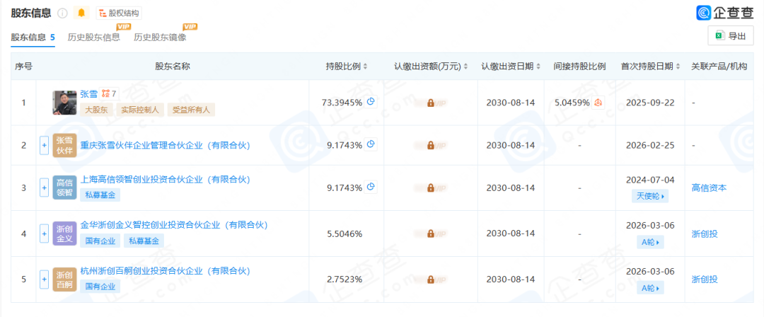 企查查披露,张雪机车的股权结构中,首创东说念主义雪本东说念主合手股73.39%,为最大推进。