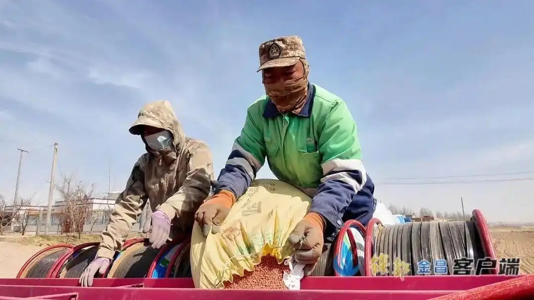 与永昌县不同,金川区的田间地头则献技着另一场“精细账”的算盘。3月30日,记者来到金川区宁远堡镇新华村时,金昌市土蛋蛋农业农民专科合营社的2300亩流转地里,加装北斗导航的大型播撒机正往复穿梭。