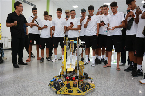 在改造创业学院,来访队列千里浸式感受了校园浓厚的改造创业氛围。在效果展示区,学校向客东说念主们展示了在寰宇大学盼望器东说念主大赛中获奖的机器东说念主,丰富的改造创业案例、功能完善的奉行平台激发队员们的无为趣味。大家围绕改造念念维培养、奉行相貌运营等话题,进行了深切疏通。